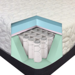 Don’t want to feel like you’re sinking into your mattress but want to reap the benefits of memory foam? Indulge in the best of both worlds. Our hybrid mattress sleeps like a “real mattress” and has been designed with both comfort and support in mind. We have created this mattress with a top layer of Cool Gel memory foam that contours to the body to provide a cooler sleeping surface. The next section of the mattress is comprised of a specially engineered pocket coils spring system that reduces motion transfer.