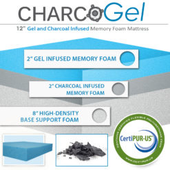 - MEMORY FOAM WITH GEL – Charcogel memory foam conforms to your body, soothing aches and pains and providing pressure-free rest for the weary back