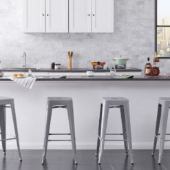 - A Modern Set of 4 Industrial Styled Barstools without Backs with a 30″ Seat Height and Made with Steel and Reinforced Legs