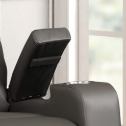 Kick back and relax in style with a drink in one of two cup holders in the Terry recliner. Included with your cup holders are two storage compartments under each arm rest. Our Terry recliners are upholstered with faux leather and an easy-to-use reclining system. With the touch of a button, you can customize just how much you want your Terry to recline. With its’ simple modern design, you can incorporate the Terry into any part of your home. Whether it be your living room, bedroom, or your theater room, let the Terry add some much needed luxury to your life.