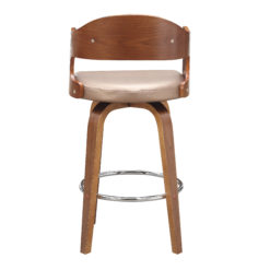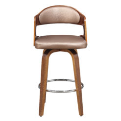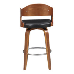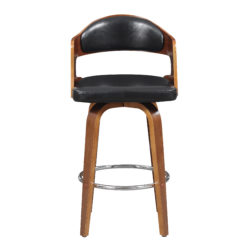 The simple mid-century design of this barstool is a gem not to be missed. Featuring curved wood, this counter height barstool is guaranteed to make a statement in your kitchen or any living space. The back and seat-cushion have been beautifully upholstered with black faux leather that defines the very essence of style. Designed with care, this wooden dining chair features sturdy construction and a footrest to reinforce its strength. Don’t forget that the seat swivels 360 degrees.